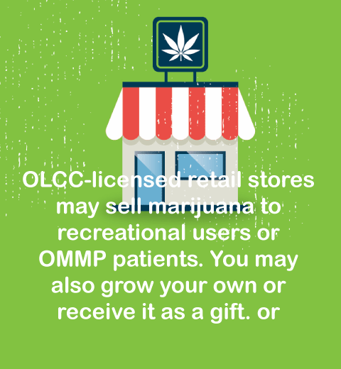 Adults 21 and older can purchase recreational marijuana from an OLCC-licensed retail establishments, share or give away recreational marijuana, or grow their own (up to 4 plants per household).