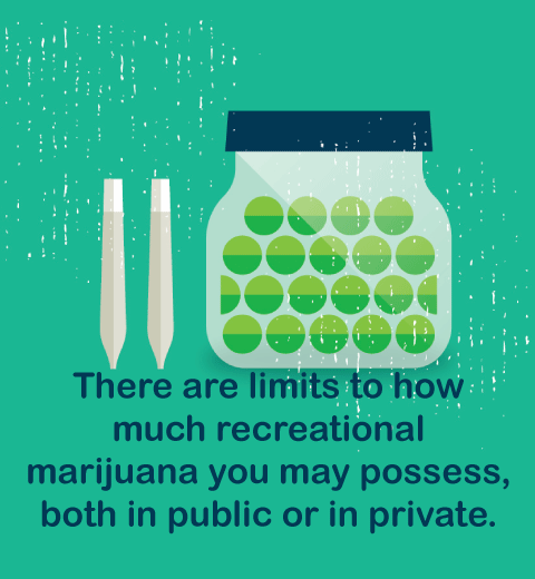 There are limits to the amount of marijuana and marijuana products that adults 21 and older may possess at any one time. PUBLIC possession limits for recreational users: Recreational users of legal age may possess the following amount of marijuana and marijuana products while in public: 1 ounce usable marijuana (dried leaves and flowers) 1 ounce cannabinoid extracts or concentrates …